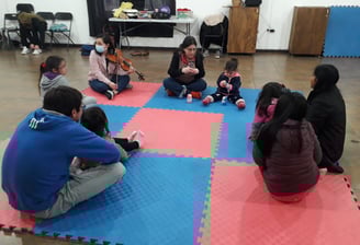 Un espacio acogedor para que familias con niños exploren la música a través del juego y amor.